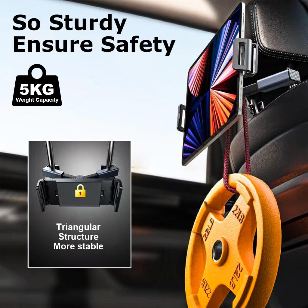 ✔️ Holds phones & tablets securely on the headrest.